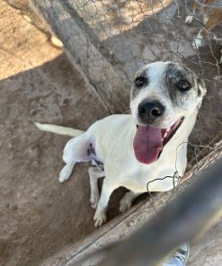 Es un perro súper enérgico, alegre, que necesita correr y tener espacio para jugar, algo que su pequeño canil no le permite.