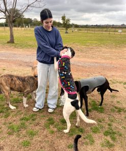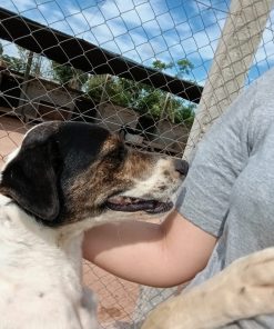 Es un perro súper cariñoso, líder por naturaleza, pero sabe adaptarse a los demás. Todas las voluntarias tenemos alguna foto abrazadas a él, porque no hay visita que no termine con uno de sus famosos “abrazos de Saltarín”.